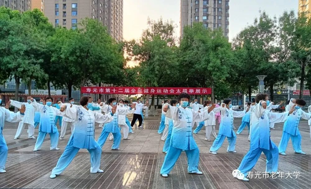 太极拳,作为国家级非物质文化遗产,要求松静自然,使大脑皮层得到休息。练太极拳则可使身心俱健,强外固内,有助于疏通经络,消除心中的郁闷,已成为习练人数最多的体育项目之一。太极培训,重在传承。寿光市老年大学每个学期都开设太极拳班,聘请名师任教,从基本功练习到技术动作讲解、练习,从24式到48式,由简到繁、循序渐进,系统的讲授太极拳,让每个学员学习太极动作的同时传承太极文化、弘扬太极精神。我们的太极拳班还积极参与展演活动,在“摩罗丹”第三届山东省老年大学文艺展演中,获得全省团体项目三等奖。太极健身,你我同行。太极拳班老师学员、活动站点的队员,在强身健体的同时也带动了太极健身的普及。每天清晨或夜幕降临,寿光市城乡各个社区、公园、广场,参与太极拳运动的老年人成千上万……弘扬中华传统太极文化,进一步推广全民太极健身运动,发挥太极的健身、养生作用,为构建和谐社区、倡导健康生活做出贡献。
