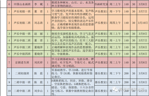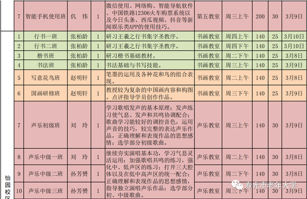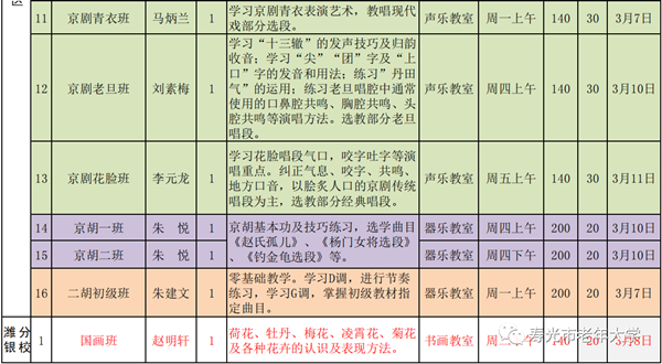 2.怡园校区预设课程:行书、楷书、书法、写意花鸟、国画研修、声乐(初、中)、京胡、二胡(初)、京剧青衣、京剧老旦、京剧花脸。