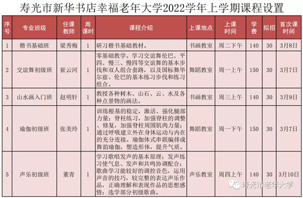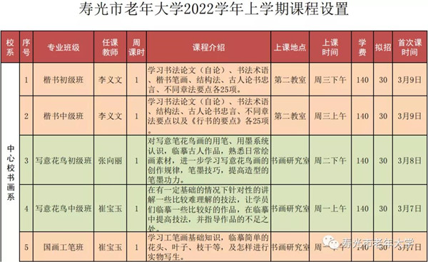 (二)现场补录(只接受名额未满的班级现场补招报名):地点设在寿光市老年大学中心校教学科(市行政审批服务局三楼B3027室),现场补录学员须携带本人二代身份证原件,并保证微信钱包足够支付学费。补录时间及课程,学校将根据线上报名情况,报名结束后另行通知,请及时关注“寿光市老年大学微信公众号”,随时查看最新通知。