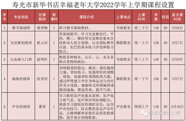 “幸福老年大学”位于石马路寿光书城三楼,与新华书店、图书馆西城分馆融为一体,设有多个功能齐全的专业教室及活动休闲室,秉承“增长知识、丰富生活、陶冶情操、促进健康、服务社会”的办学理念,让广大老年人老有所学、老有所乐、老有所为,全力打造文化养老、品质养老的 “寿光模式”。欢迎走进老年大学,开启美好的人生新路程。