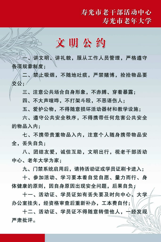 寿光市老年大学文明公约