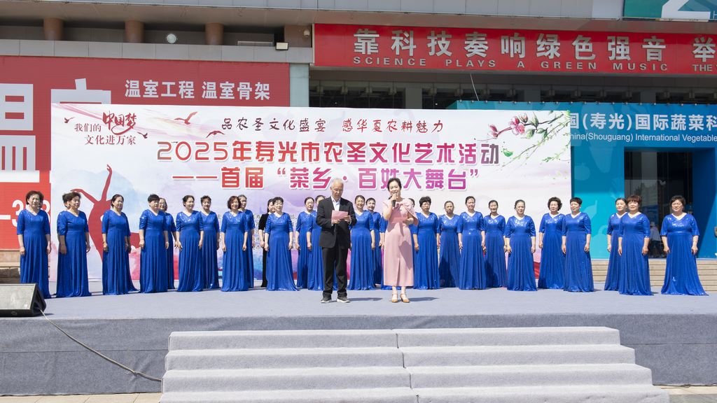 第26届中国(寿光)蔬菜科技博览会盛大启幕之际,4月25日,寿光市老年大学联合新华书店幸福老年大学共同举办2025年寿光市农圣文化艺术活动暨首届“菜乡?百姓大舞台”老年大学专场演出,14个精心编排的文艺节目、371名老年大学师生,以“奏响菜乡情·银龄绽芳华”为主题,为来自全国各地参观的朋友们,献上了一场文化与农耕交融的唯美视听盛宴,生动诠释了寿光老年人“老有所学、老有所乐、老有所为”的银龄风采。
