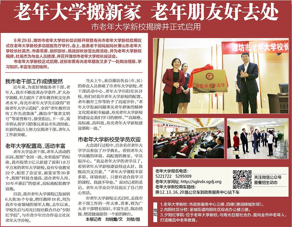 寿光市老年大学新校启用