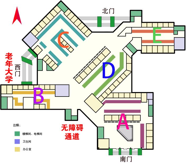 3、上下课路线:请学员将车辆停放在西门停车区,从西门进入,乘左侧电梯上二楼,穿过书画走廊,从东楼梯或电梯上三楼综合办公室、各活动室或四楼教室。下课后,请原路返回。
