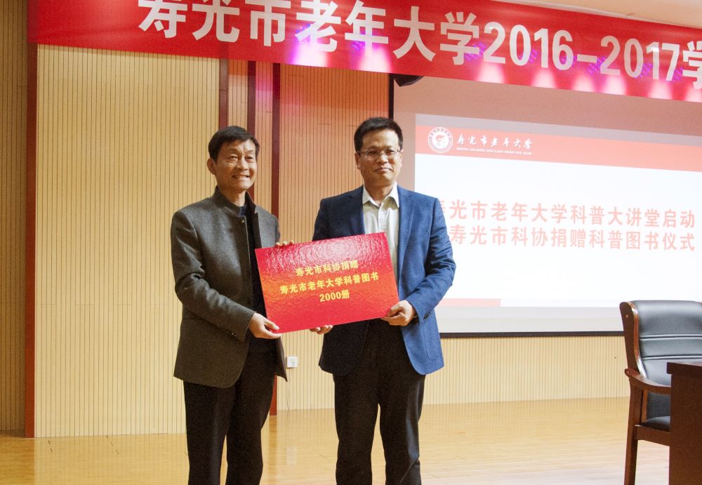 市老年大学科普大讲堂暨寿光市科协科普图书捐赠仪式举行,市科协主席刘伟讲话并为老年大学捐赠科普图书2000册。市科协充分发挥老年大学的阵地作用,致力于拓宽科学普及的层面,造就新世纪新型健康老人。以老年大学科普大讲堂的成立为新的起点,立足自身职能,针对“五大”重点人群,积极开展科普培训活动,把科普大讲堂办好、办实、办出特色、办出成效,让科普知识走进千家万户,使科普惠民工作更加深入人心,为提高我市社会文明程度,推动我市全民科学素质工作提升再上新台阶。