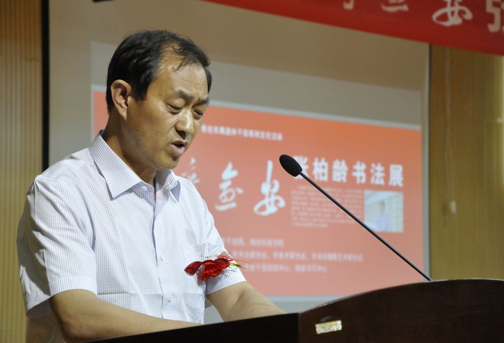 潍坊科技学院副院长张子泉介绍张柏龄老师和书法展情况