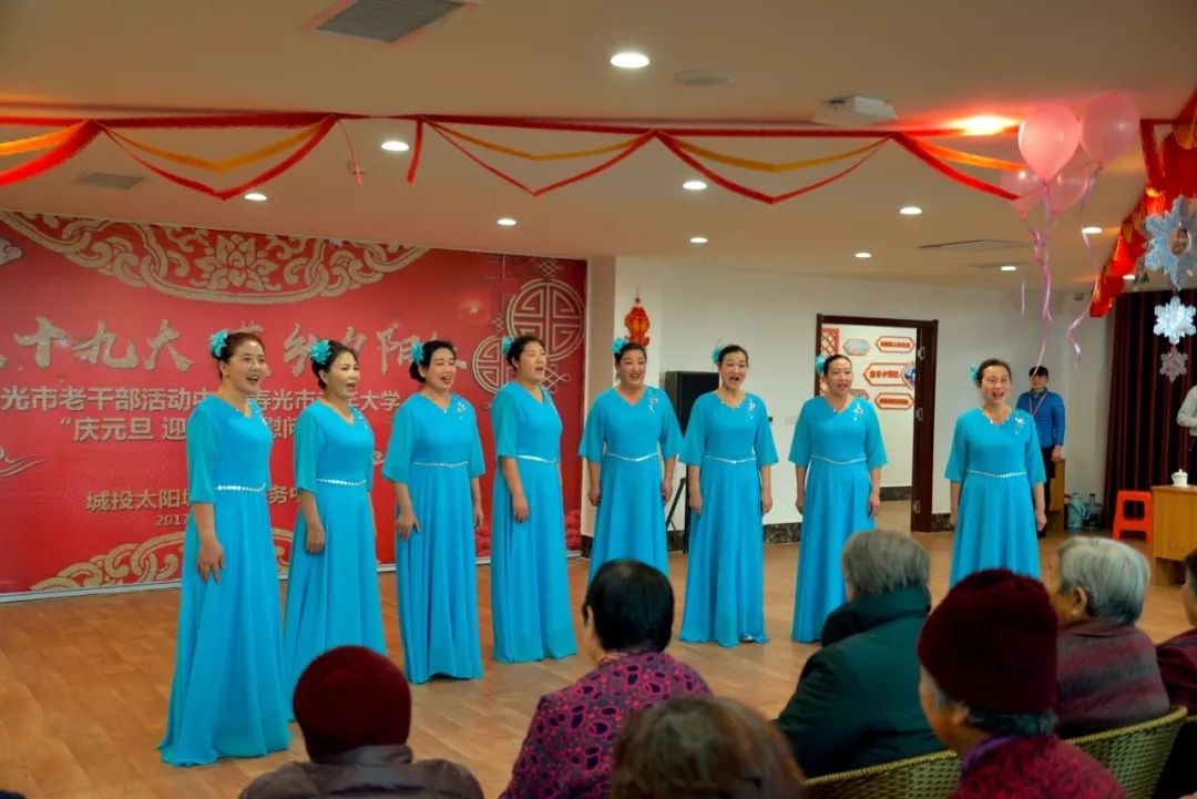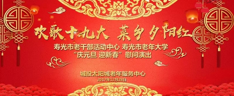 12月28日上午,在城投太阳城老年服务中心礼堂内一片欢歌笑语,“欢歌十九大 菜乡夕阳红”寿光市老干部活动中心、寿光市老年大学“庆元旦 迎新春”慰问演出在这里隆重举行。