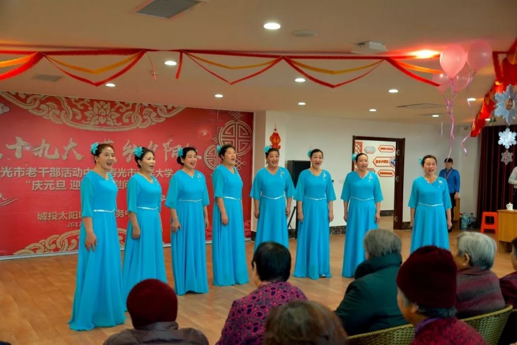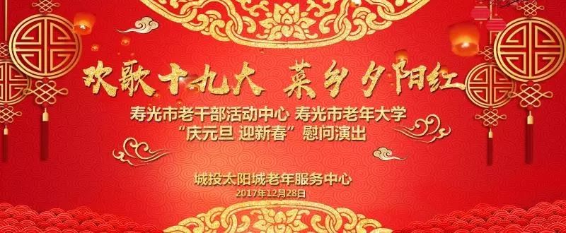 12月28日上午,在城投太阳城老年服务中心礼堂内一片欢歌笑语,“欢歌十九大 菜乡夕阳红”寿光市老干部活动中心、寿光市老年大学“庆元旦 迎新春”慰问演出在这里隆重举行。