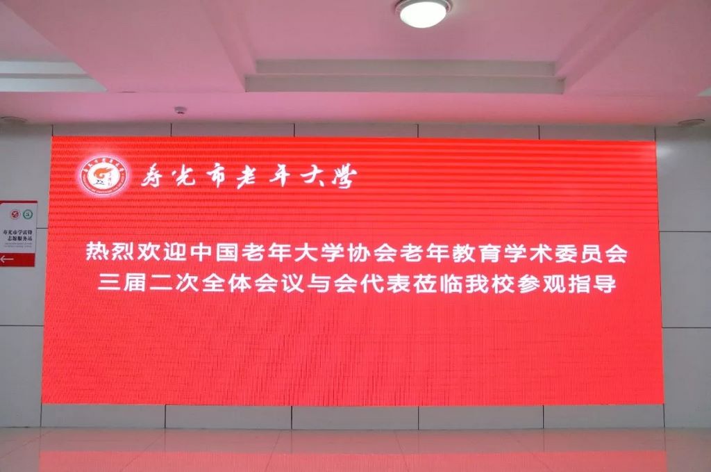 中国老年大学协会老年教育学术委员会三届二次全体会议于2019年1月10—11日在潍坊市召开。1月11日下午,中国老年大学协会老年教育学术委员会常务副主任赵文玉及与会代表一行52人,在潍坊市委老干部局副局长、市老年大学校长肖振胜,老干部活动中心主任、老年大学副校长高霞陪同下来我市老年大学参观指导。寿光市委常委、组织部长张逢春,市委组织部副部长、老干部局长葛树涛陪同参观。