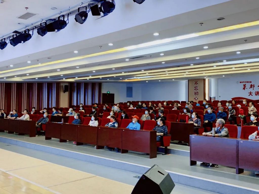 讲座开始前,所有人员均佩戴口罩、测体温、出示健康码,有序入场,间隔就坐。