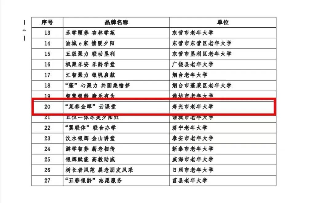 近日,山东老年大学、山东省老年大学协会公布《关于认定首批全省老年大学合作交流特色品牌的通报》,寿光市老年大学“菜都金晖”云课堂被认定为首批全省老年大学合作交流特色品牌。