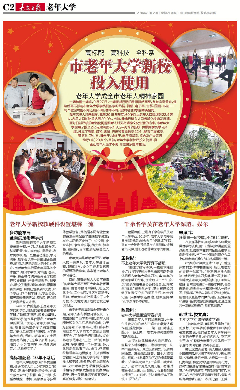 老年大学专刊:老年大学新校投入使用